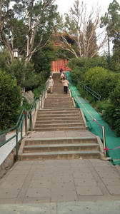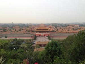 景山公園は、小高い丘を中心とした小さな公園です。丘の上には寺社が建っています。頂上からの景色は…まさにポストカードですね。自分が入った写真もやさしそうな女子大生に撮ってもらいました。