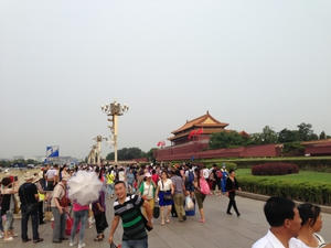故宮の裏手からバスに乗り、入口である天安門へ。天安門の入り口は非常に混雑。2つしかないボディチェックのゲートに人が押し寄せるんですから当たり前ですね。待っている間、すごい人混みなのに堂々と煙草を吸うおっさん達。分煙になれきった自分には久しぶりの感覚です。そういえば、北京は喫煙者が多かったように思います。