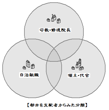 こうして形成された司教座都市には、フランク王国時代、都市伯が置かれるようになりました。司教と伯との関係は都市によって様々で、司教がある程度の重要性を残したものから、ほとんどの実権を伯が取得した都市もありました。彼ら都市の指導者層は、都市の自治組織が発達するまで、都市内で大きな権力を持ち続けていたのです。