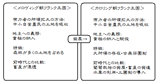 ▼「メロヴィング朝期とカロリング朝期の比較」