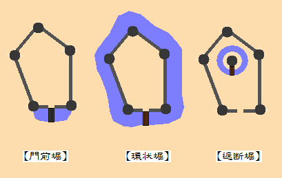 ▼「門前堀・環状堀・遮断堀」
