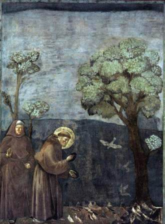 ▲小鳥に説教をする聖フランチェスコ(ジョット/聖フランチェスコ大聖堂壁画)