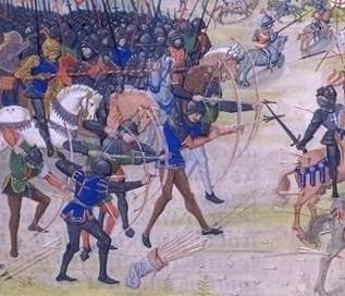 ▲ポワティエの戦い(1356)におけるロングボウ兵
